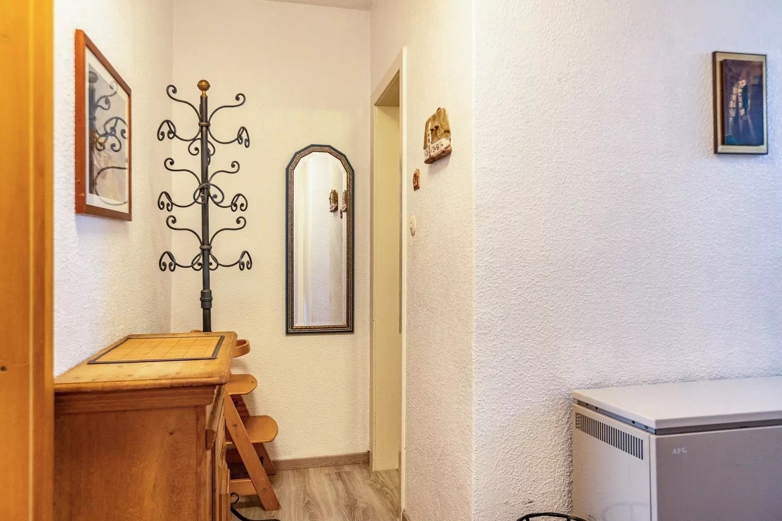 Ein Babybett und ein Hochstuhl sind ebenfalls vorhanden.