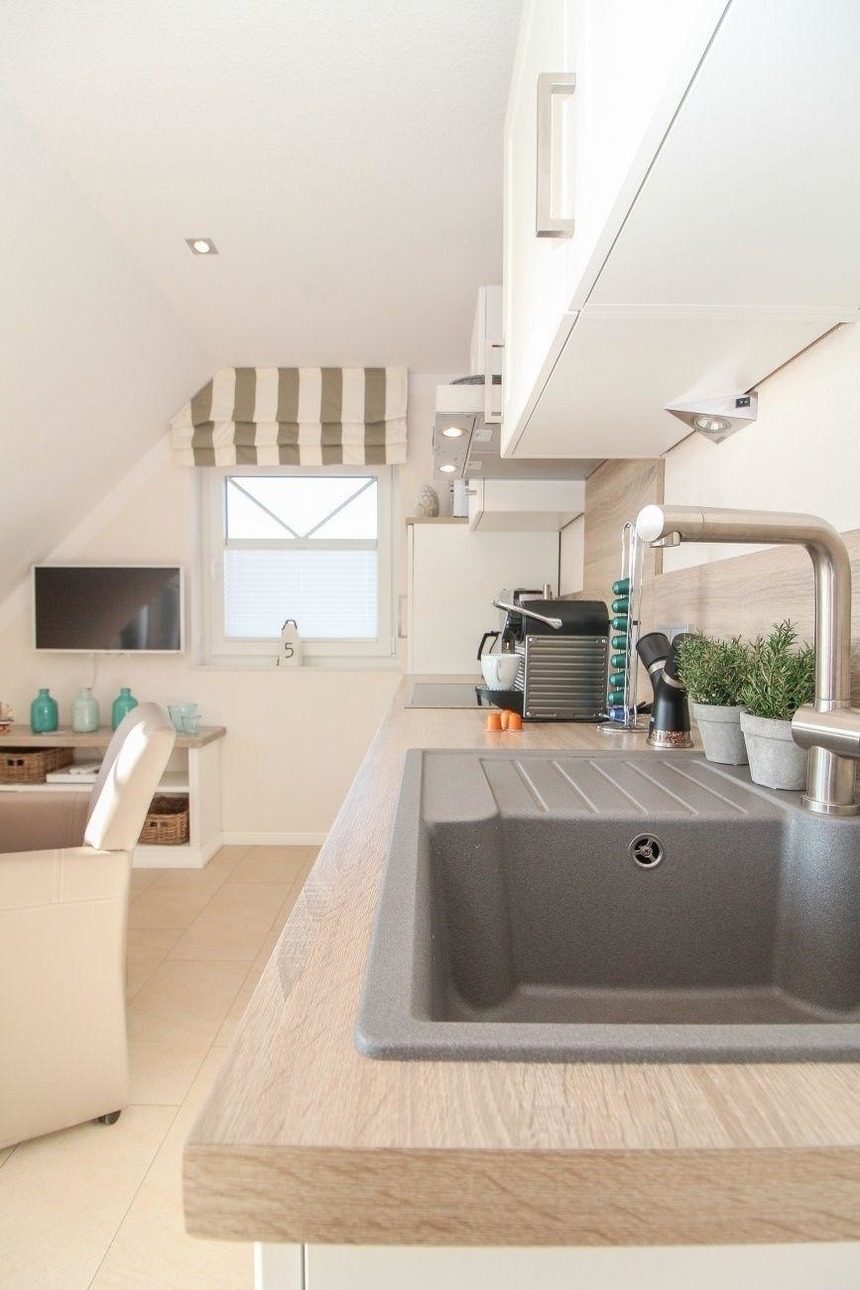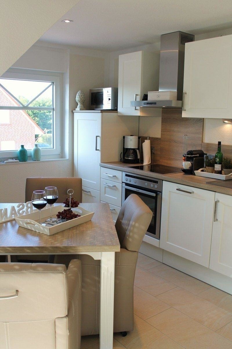 In der hochmodernen Küche wird der Kochkunst keine Grenzen gesetzt, da Ceranfeld und Umluftbackofen, Mikrowelle mit Sonderfunktionen, Kaffeemaschine, Marken-Geschirr und hochwertige Kochutensilien vorhanden sind. Für den morgendlichen Kaffeegenuss ist eine Nespressomaschine mit 15 kostenlosen Kapseln verschiedener Nespressosorten vorhanden. Diesen können Sie dann an der Essgruppe in den sehr bequemen Sesseln einnehmen.