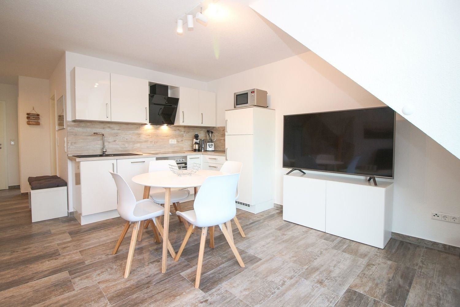 Im Wohn-/Essbereich befindet sich eine gut ausgestattete Küchenzeile.