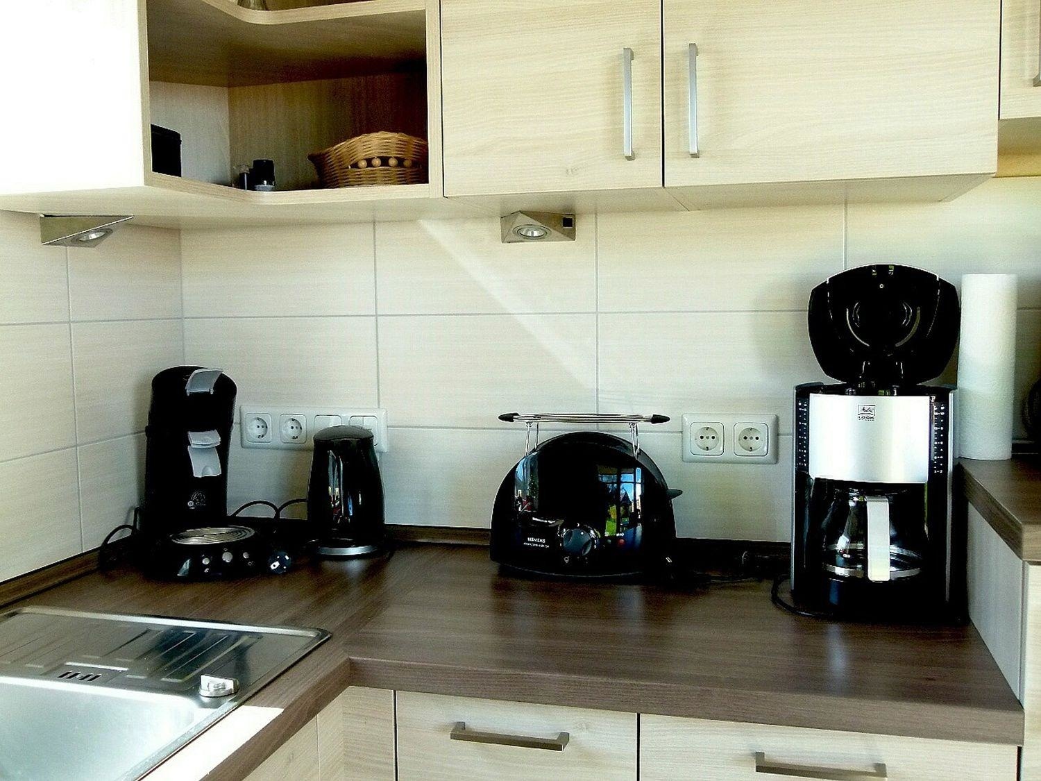 Für die Zubereitung Ihrer Speisen erwartet Sie eine wunderschöne, moderne Einbauküche mit Annehmlichkeiten wie z. B. Herd mit Ceranfeld und Backofen, Kühlschrank mit Eisfach, Geschirrspüler, Mikrowelle, Kaffeemaschine, Toaster, Wasserkocher und Mixer.