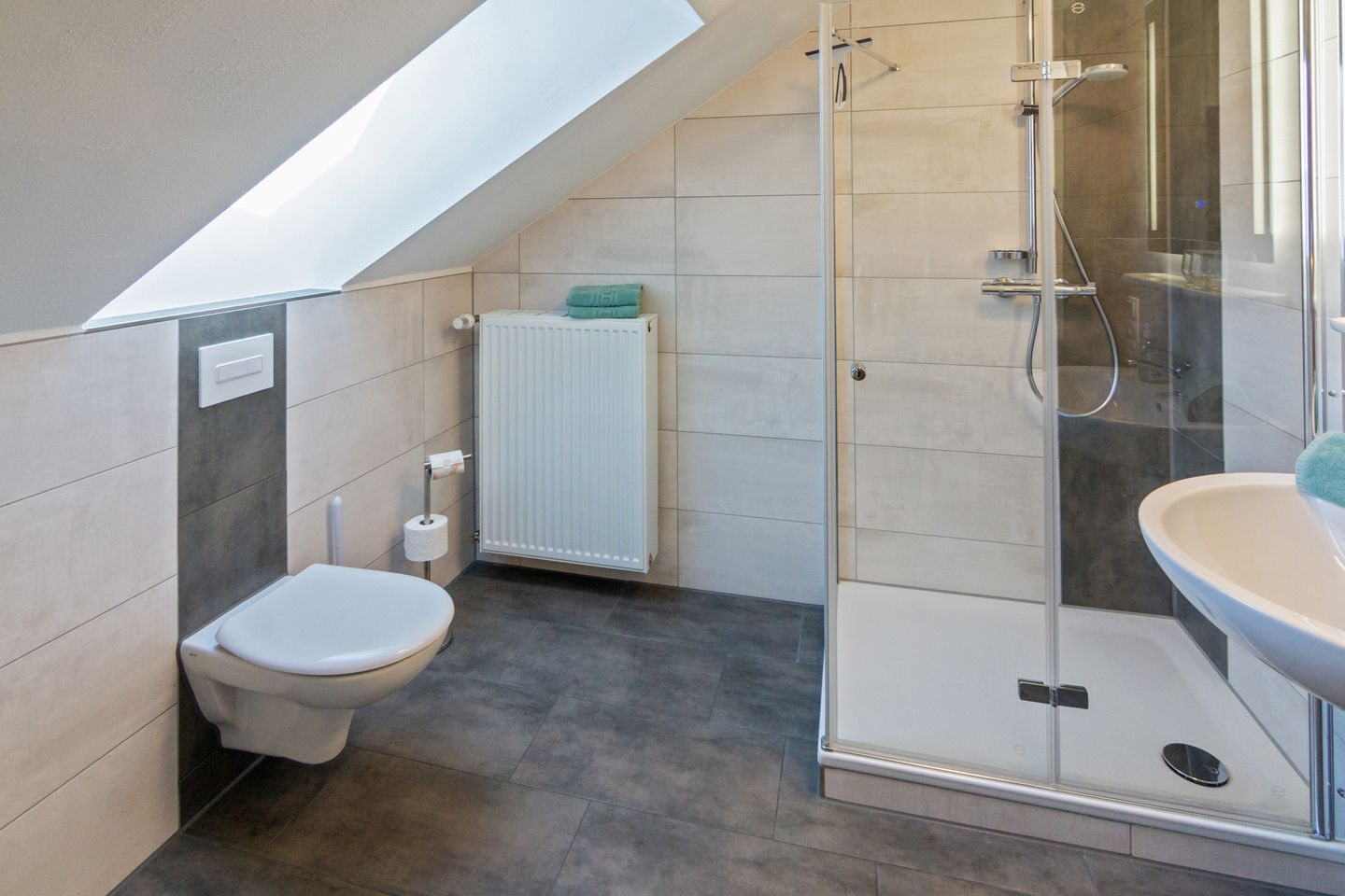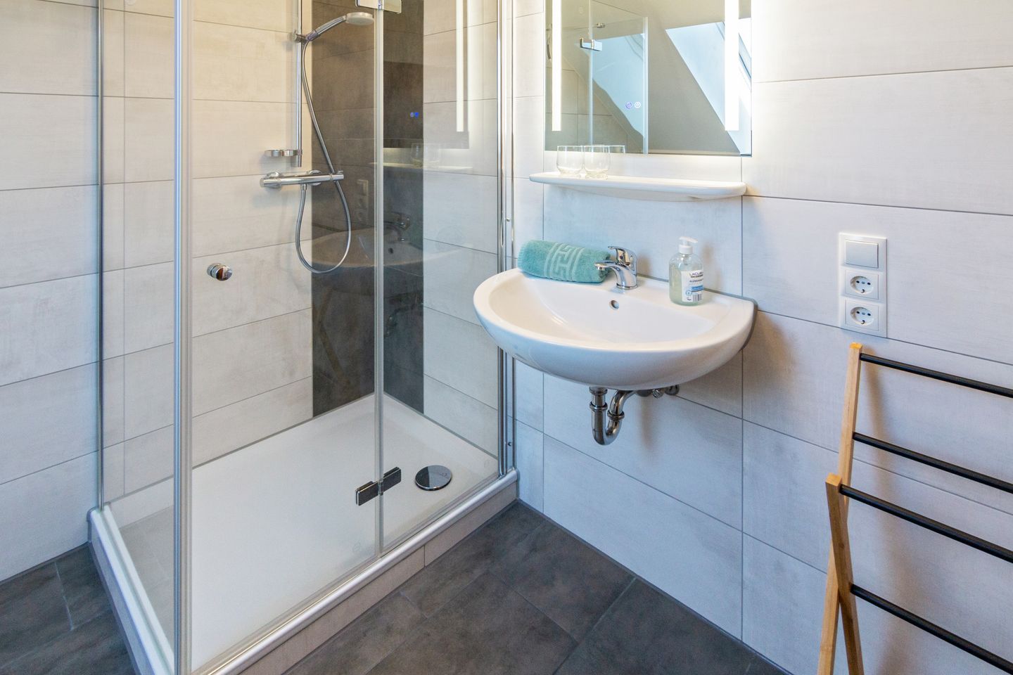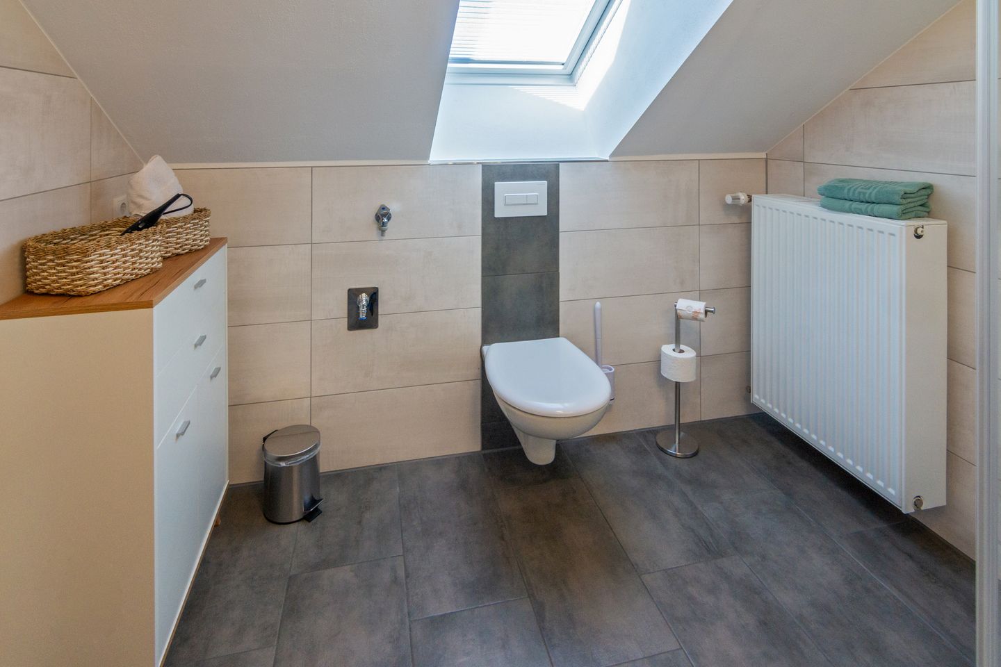 Das moderne Tageslichtbad ist mit Dusche, WC, Waschbecken und einem Haartrockner ausgestattet. Ein Wäscheständer sowie Staubsauger stehen Ihnen ebenso zur Verfügung. Die Unterkunft ist ausdrücklich als Nichtraucherdomizil ausgewiesen und verfügt über einen Rauchmelder für Ihre Sicherheit.