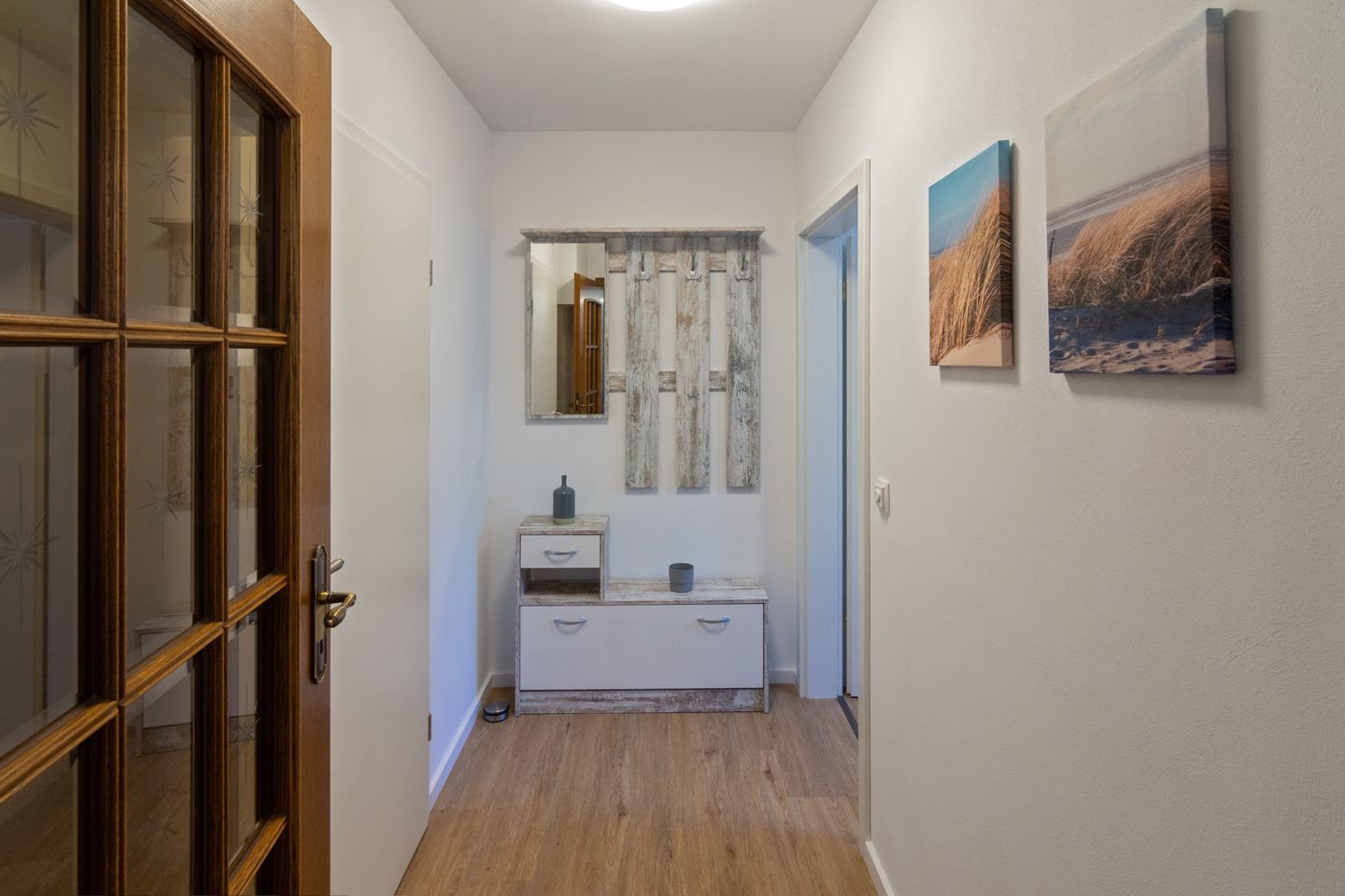 Die Wohnung befindet sich auf einem traditionellen Bauernhof in Alleinlage, der sich auf Ackerbau spezialisiert hat – ohne Tierhaltung. Rund um das Haus prägen weite Felder mit Getreide und leuchtend gelbem Raps das Landschaftsbild und sorgen für eine besonders naturnahe Atmosphäre.