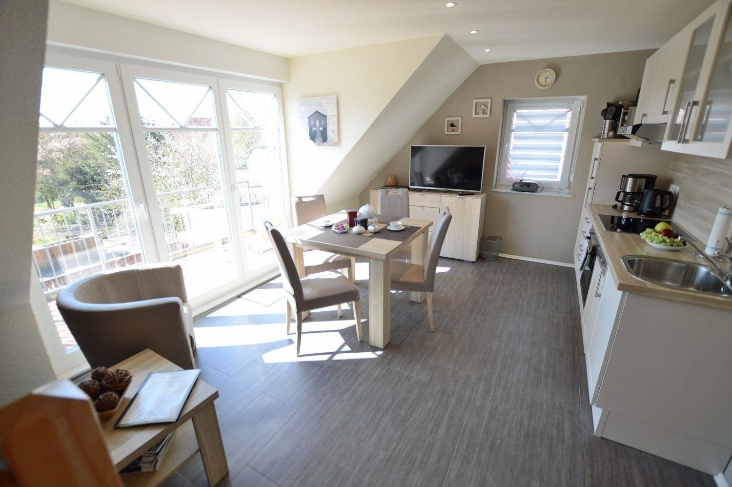 Willkommen in der Ferienwohnung Seaside! Diese Unterkunft liegt in der Region Norddeich & Umgebung auf dem Festland Ostfrieslands. Erleben Sie den besonderen Charme der Nordseeküste mit seinen urigen Fischerdörfern, Windmühlen und endlosen Deichwegen. Die Ferienwohnung bietet 2 Schlafzimmer und hat eine Wohnfläche von 62 Quadratmetern. Es gibt 1 Badezimmer und im Preis inkludiert sind 4 Gäste. Hunde sind nicht gestattet. Wir laden Sie herzlich ein, die erholsame Nordseeluft des Nationalparks Niedersächsisches Wattenmeer zu genießen und sich von der Ruhe Ostfrieslands einnehmen zu lassen. Wir würden uns freuen, wenn die Ferienwohnung "Seaside" dabei die richtige Unterkunft für Sie ist. Buchen Sie diese Unterkunft jetzt zum günstigsten Preis auf Ostfriesland Domizile, oder stöbern Sie in unserer Suche nach weiteren Ferienwohnungen in der Region.Über diese Ferienwohnung