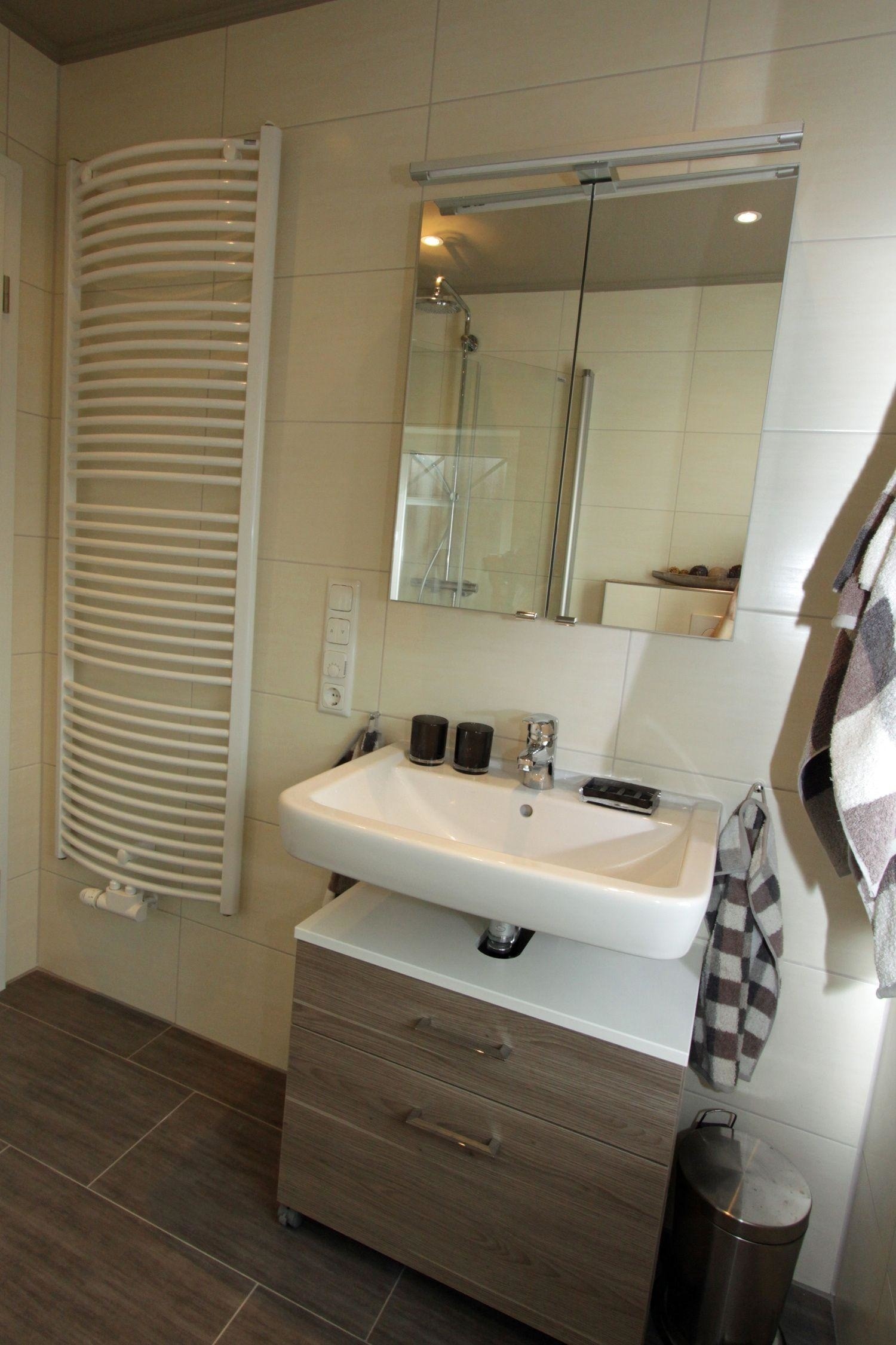Das in grauen, vanillefarbenen und hellbraunen Tönen gehaltene Tageslichtbad ist mit einer begehbaren Regendusche, WC und Spiegelschrank und beheizbarem Handtuchhalter ausgestattet und selbst kaltes Wetter kann Ihnen nichts anhaben, da die ganze Wohnung über eine Fußbodenheizung verfügt.
