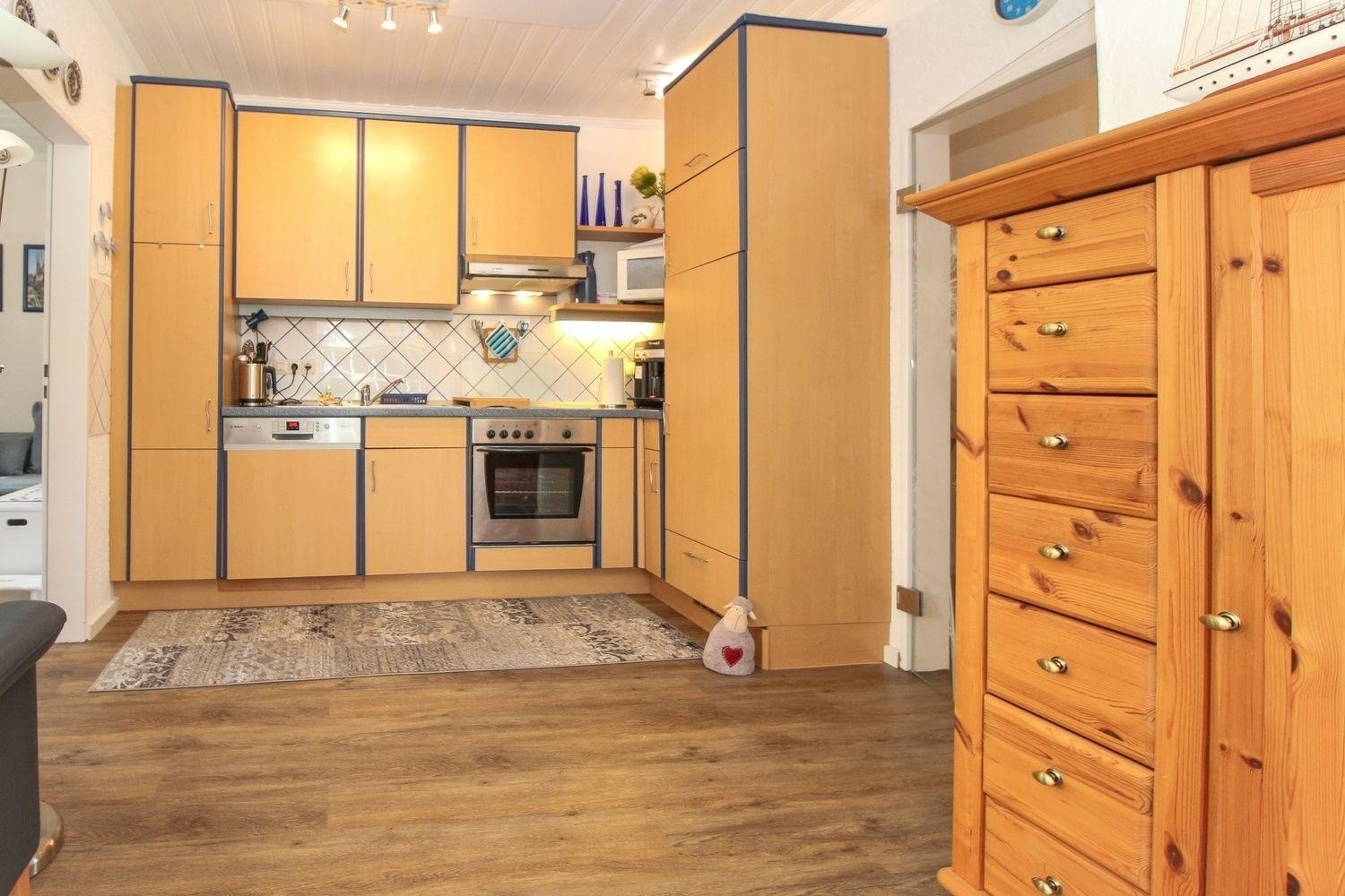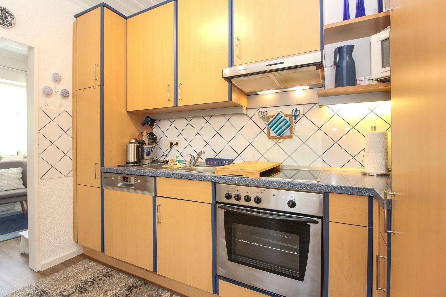 Eine Erstausstattung (Spülmaschinentab, WC-Papier, kl. Flasche Spülmittel, Spültuch und Topfschwamm) ist vorhanden.
