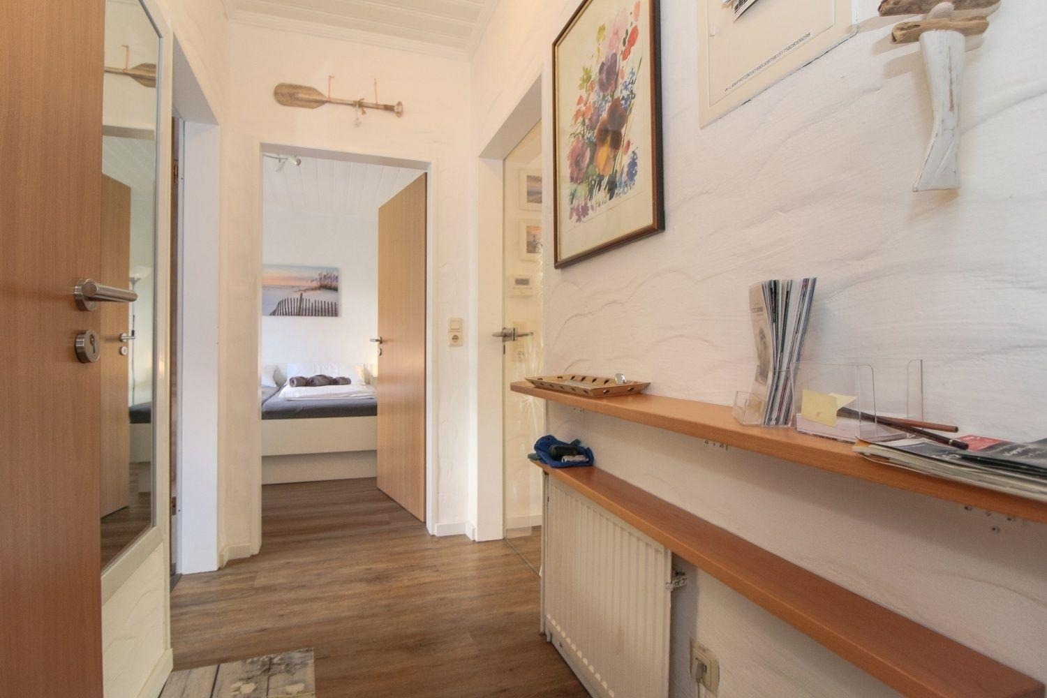 Es gibt ein größeres Schlafzimmer mit Schrank und Doppelbett. Ein zweites kleineres Schlafzimmer kann von einer weiteren erwachsenen Person genutzt werden.