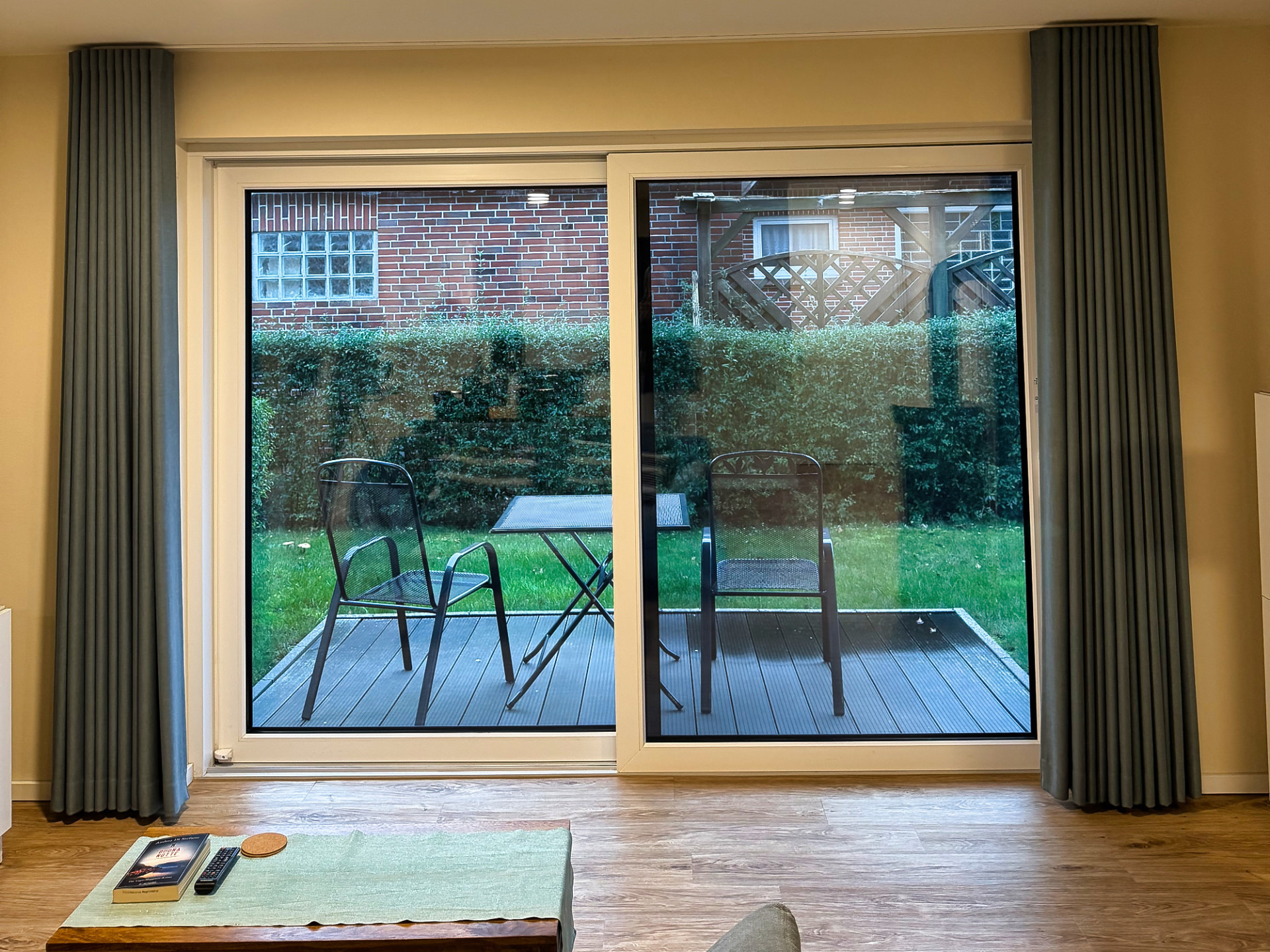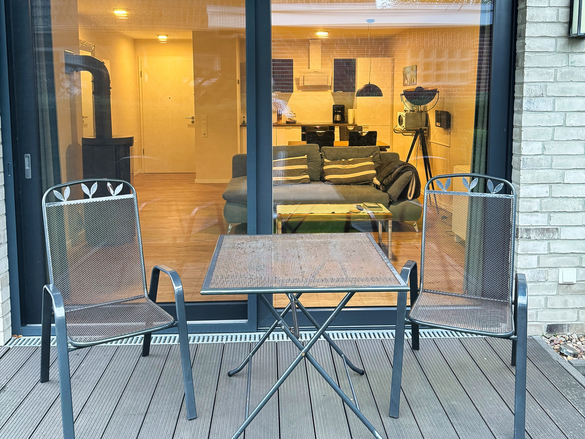 Die Einbauküche bietet alles, was Sie benötigen, um im Urlaub in aller Ruhe ein schmackhaftes Menü zu zaubern und dieses am gemütlichen Esstisch gemeinsam zu genießen. Beenden Sie einen tollen Urlaubstag mit einem leckeren Glas Wein auf der Terrasse. Unsere Terrasse hat eine Süd-Westausrichtung.