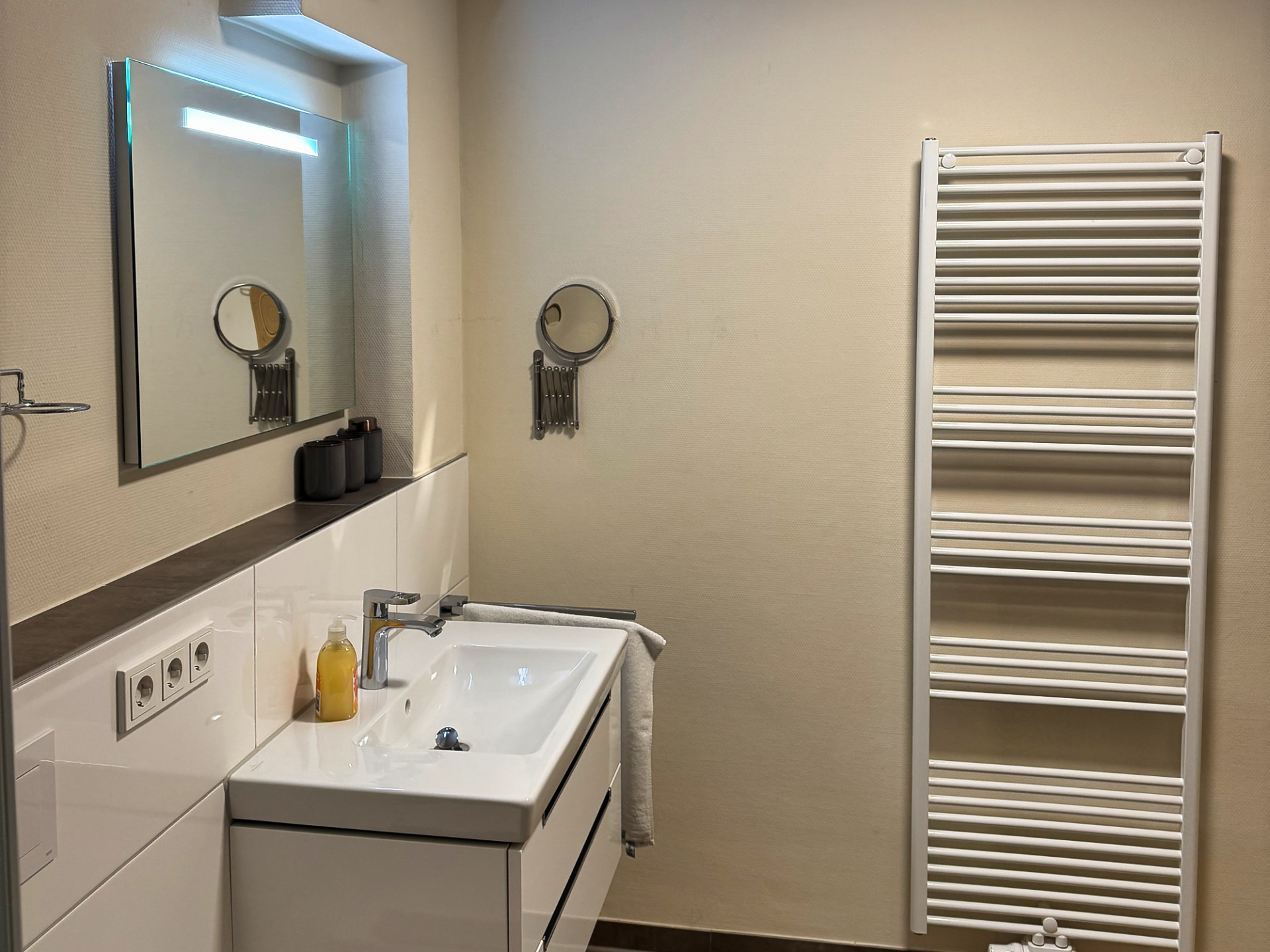 Auf dem hochwertigen Boxspringbett mit Qualitätsmatratze (180×200 cm) ist Ihnen absoluter Schlafkomfort und dadurch ein erholsamer Aufenthalt garantiert. Ein großer Kleiderschrank, ein Fernseher und Verdunkelungsplissees sind vorhanden. Unser Wellnessbad verfügt über eine bodengleiche Dusche und eine große Sauna. Nehmen Sie sich ausreichend Zeit, um sich hier zu entspannen.