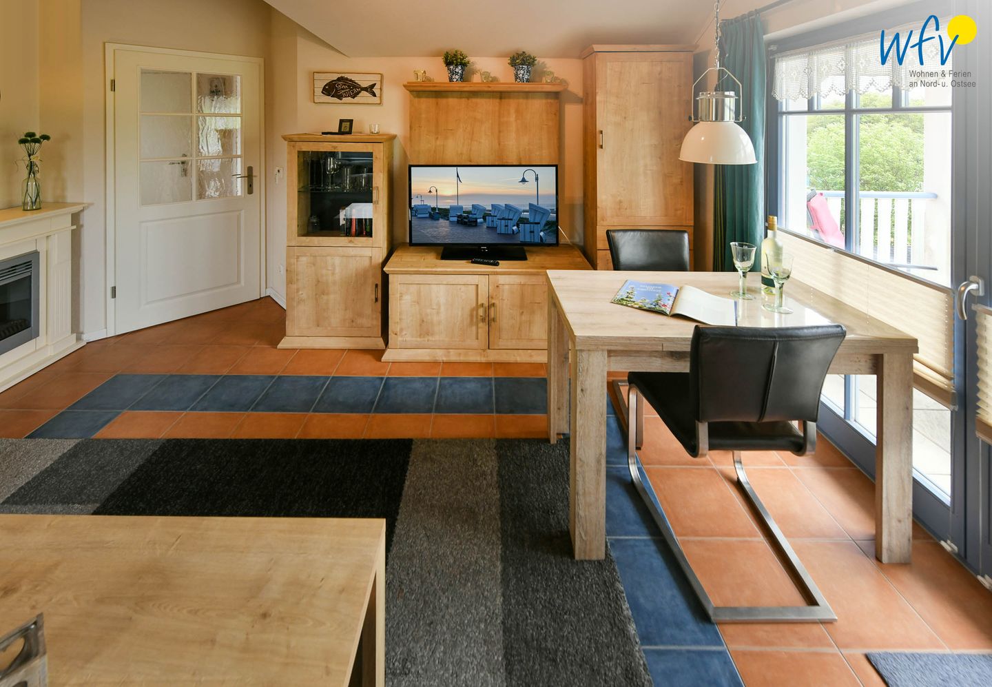 Die moderne Einbauküche – u.a. mit Herd, Backofen, Mikrowelle und Spülmaschine – lässt Sie in Ihrem Urlaub leckere Gerichte zaubern. Ganz in der Nähe des Hauses erwarten Sie außerdem Restaurants, auf deren Terrassen mit Meerblick Sie in den Genuss wunderschöner Sonnenuntergänge und köstlicher Spezialitäten der Nordseeküche kommen!