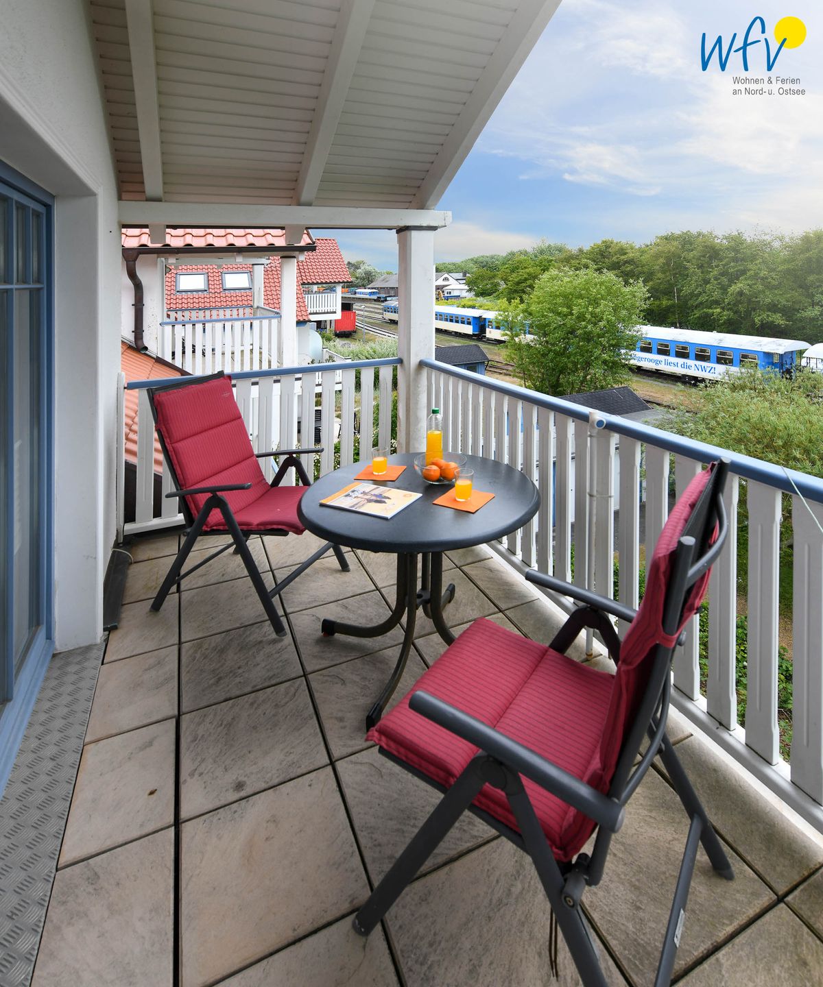 Herrlich entspannen können Sie auch auf dem Balkon der Wangerooger Ferienwohnung! Seine Ausrichtung nach Süden garantiert Ihnen viele sonnige Relaxmomente! Wohltuende frische Nordseeluft gibt`s selbstverständlich inklusive!