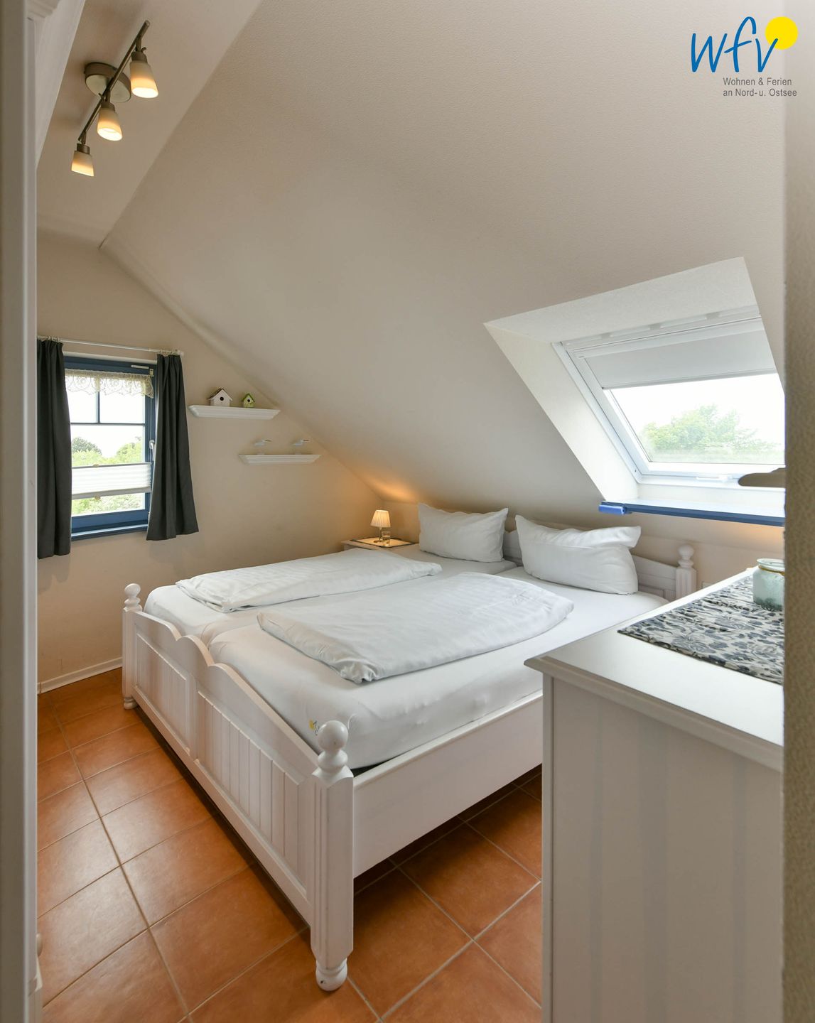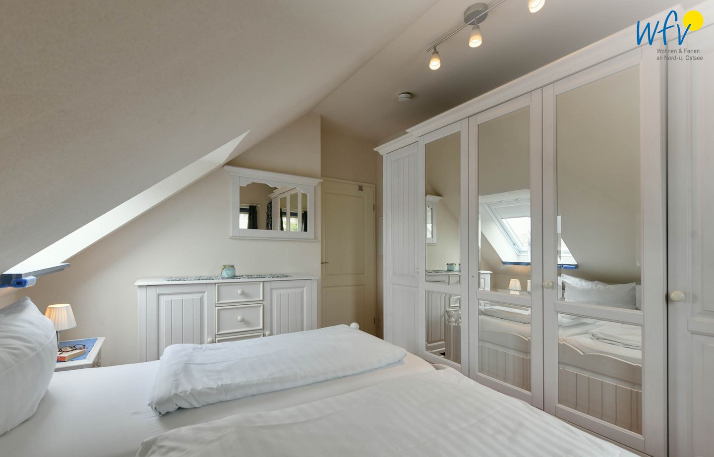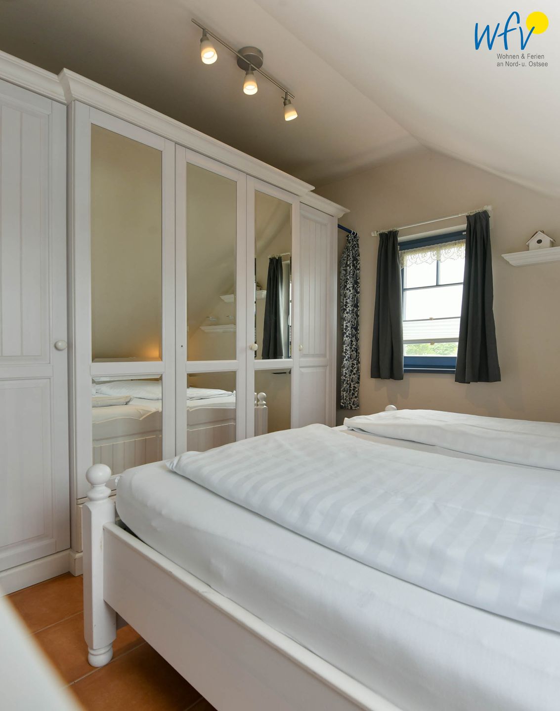 Das komfortable Doppelbett (1,80 m) lädt zum ausgiebigen Ausschlafen ein. Die Ferienwohnung eignet sich optimal für zwei Personen. Ihre Urlaubsgarderobe findet Platz im Kleiderschrank.
