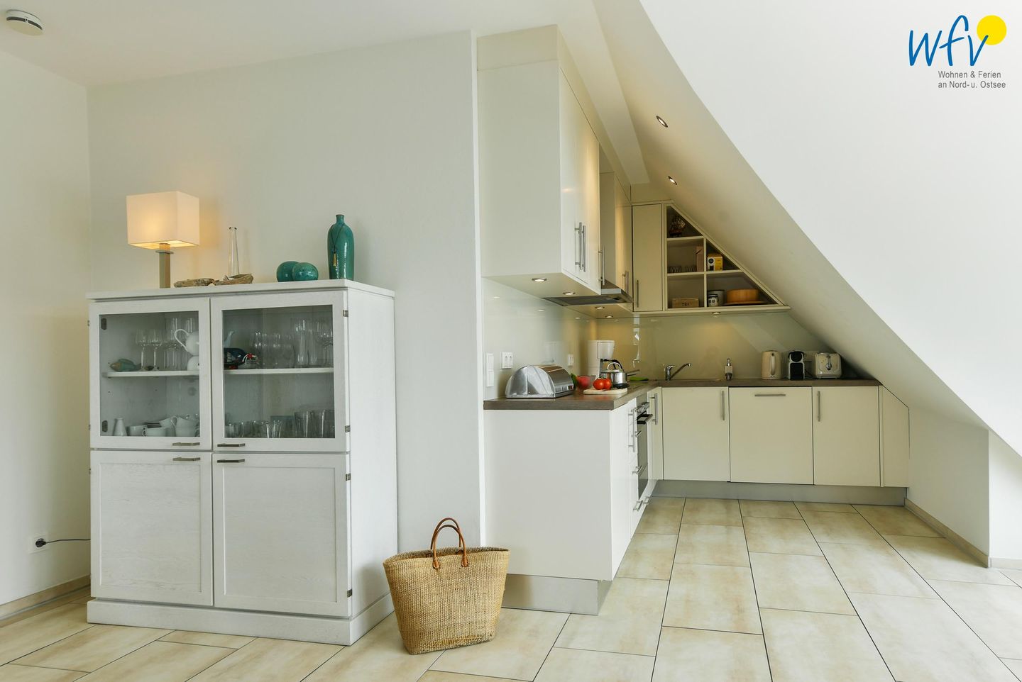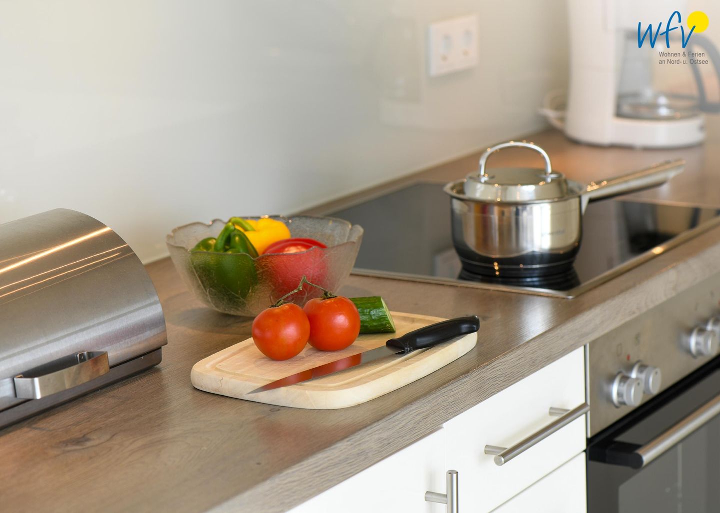 Die voll ausgestattete Küche lässt Sie auch im Urlaub zu Gourmets werden. Hier finden Sie alles, was Sie benötigen, um kulinarische Köstlichkeiten zuzubereiten: Von einem Herd über eine Mikrowelle bis hin zu modernsten Geräten wie einer Nespresso-Kapselmaschine, einem Kühlschrank mit Gefrierfach und einer Spülmaschine – es fehlt Ihnen an nichts. Der elegante Essbereich lädt dazu ein, gemütliche Abende mit Blick auf den beleuchteten Alten Leuchtturm zu verbringen.