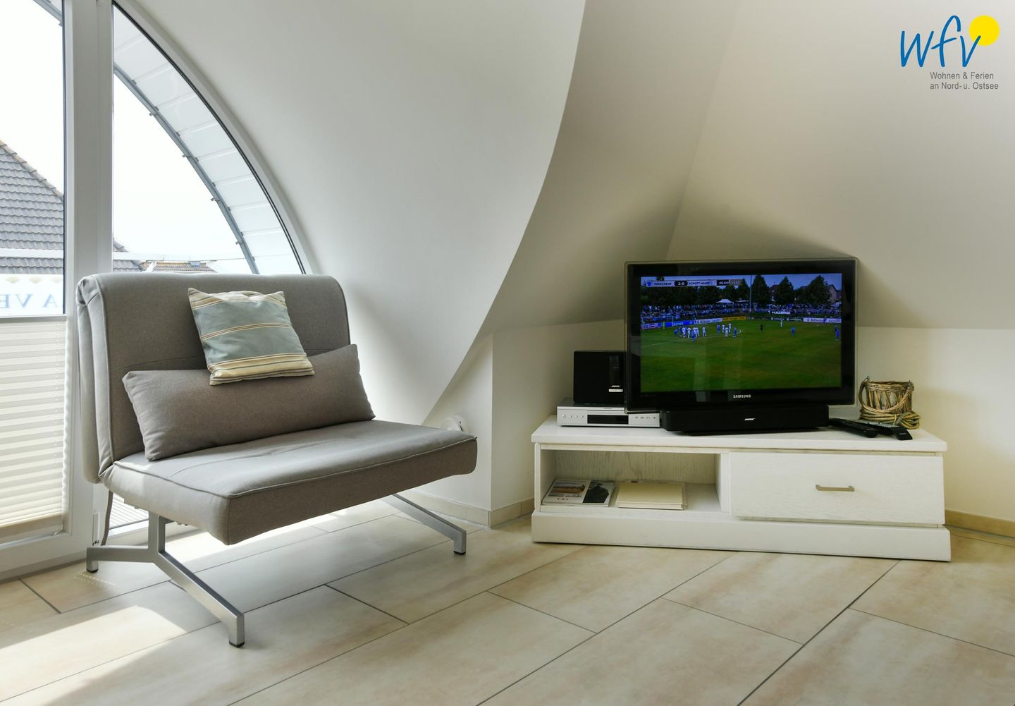 Die Wohnung besticht durch ihr offenes Raumkonzept mit durchgängiger Fußbodenheizung, das eine helle und einladende Atmosphäre schafft. Besonders beindruckend ist das große Rundbogenfenster mit Essplatz und schönem Blick in die Umgebung. Im liebevoll eingerichteten Wohnraum finden Sie zudem eine bequeme Sofaecke mit TV und DVD/CD-Spieler. Schnelles und kostenloses WLAN sorgt dafür, dass Sie verbunden bleiben, während Sie die Schönheit der Natur genießen.