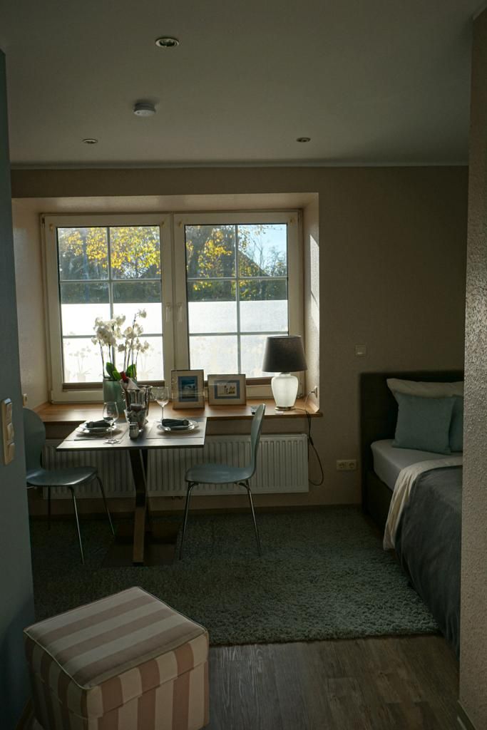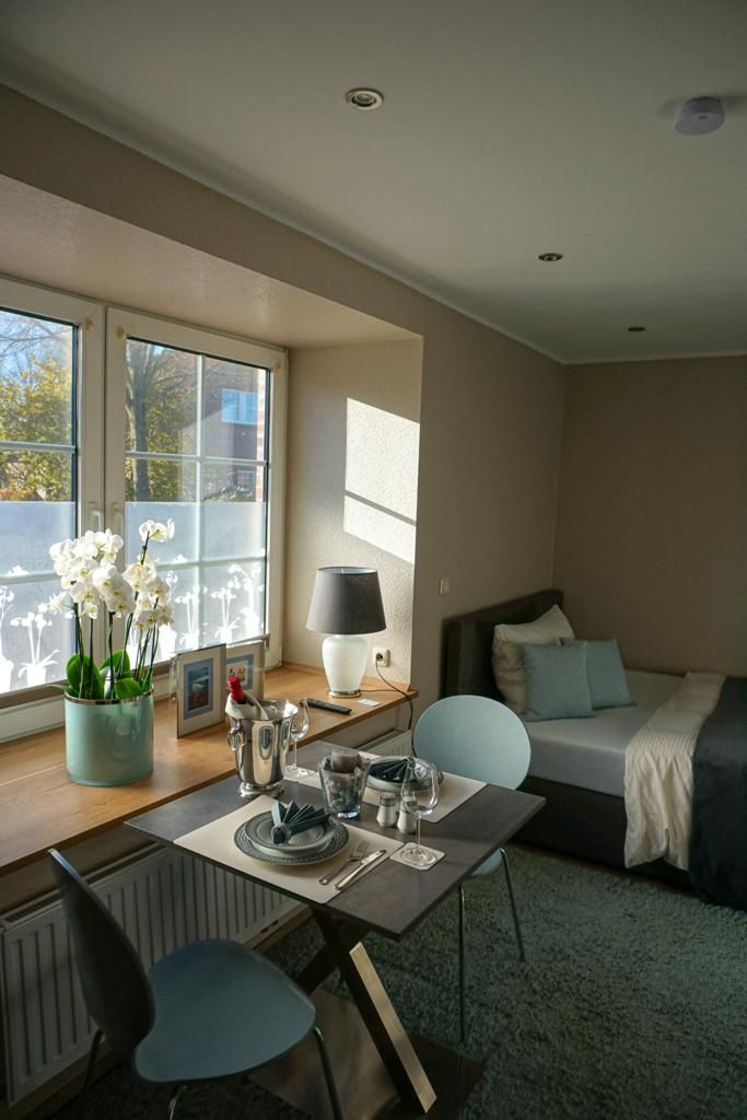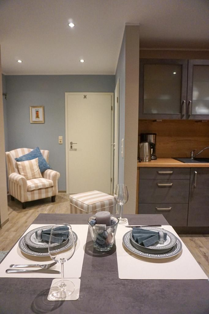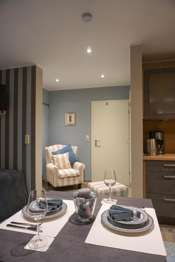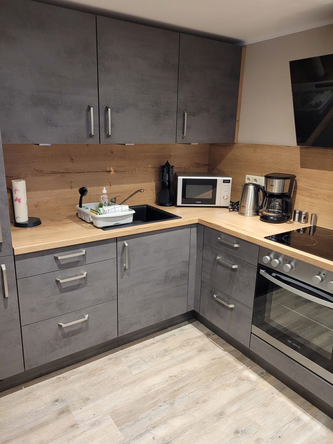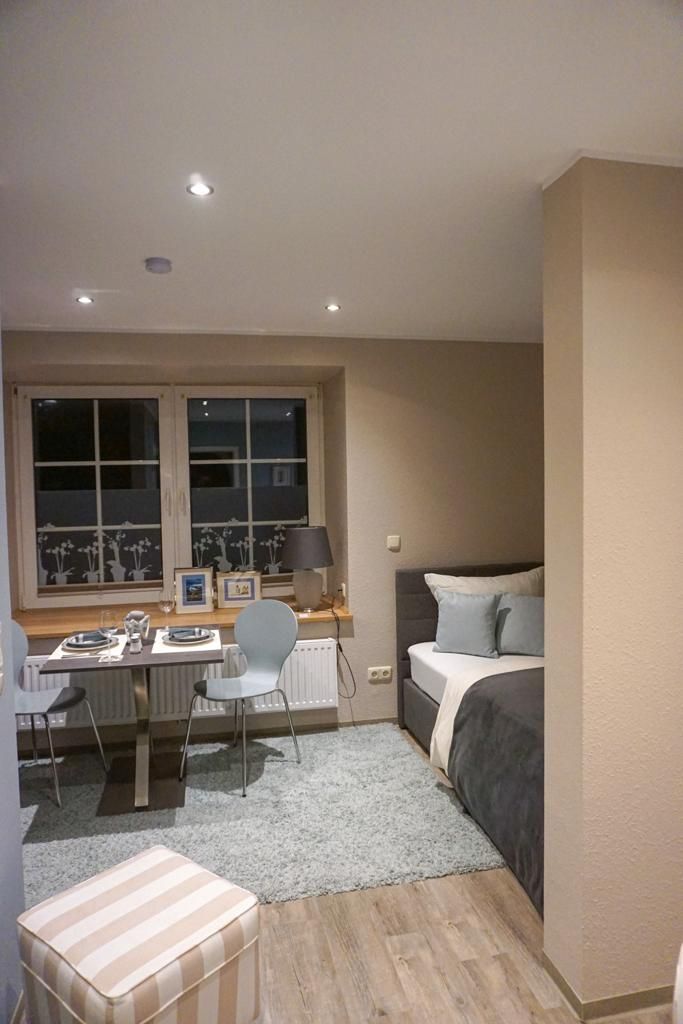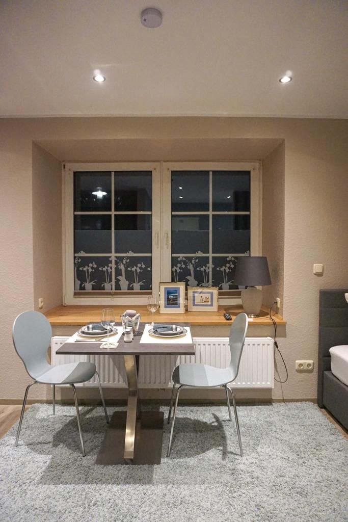 Das Apartment ist als modernes 1‑Zimmer‑Domizil konzipiert und überzeugt durch eine klare, funktionale Ausstattung. Ein 1,60 m breites, bequemes Bett, ein Fernseher sowie ein Essplatz für zwei Personen schaffen eine angenehme Wohnatmosphäre. Die kompakte Küche ist gut ausgestattet und ermöglicht die Zubereitung kleiner Mahlzeiten (eine Spülmaschine ist nicht vorhanden). Das angrenzende moderne Duschbad ergänzt die Wohnung. Dank der Lage im Erdgeschoss und der barrierearmen Gestaltung eignet sich die Wohnung auch für Gäste mit eingeschränkter Mobilität.