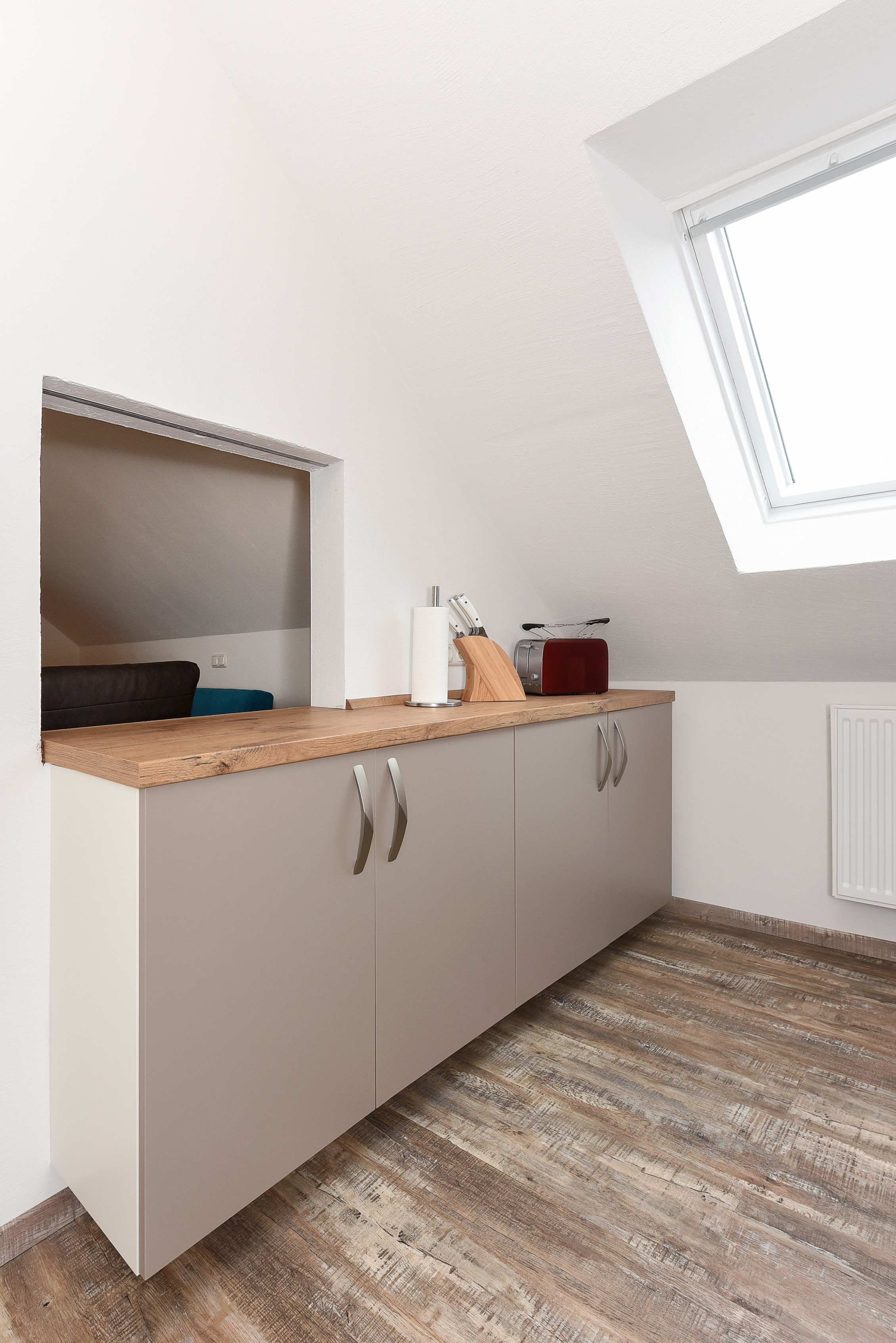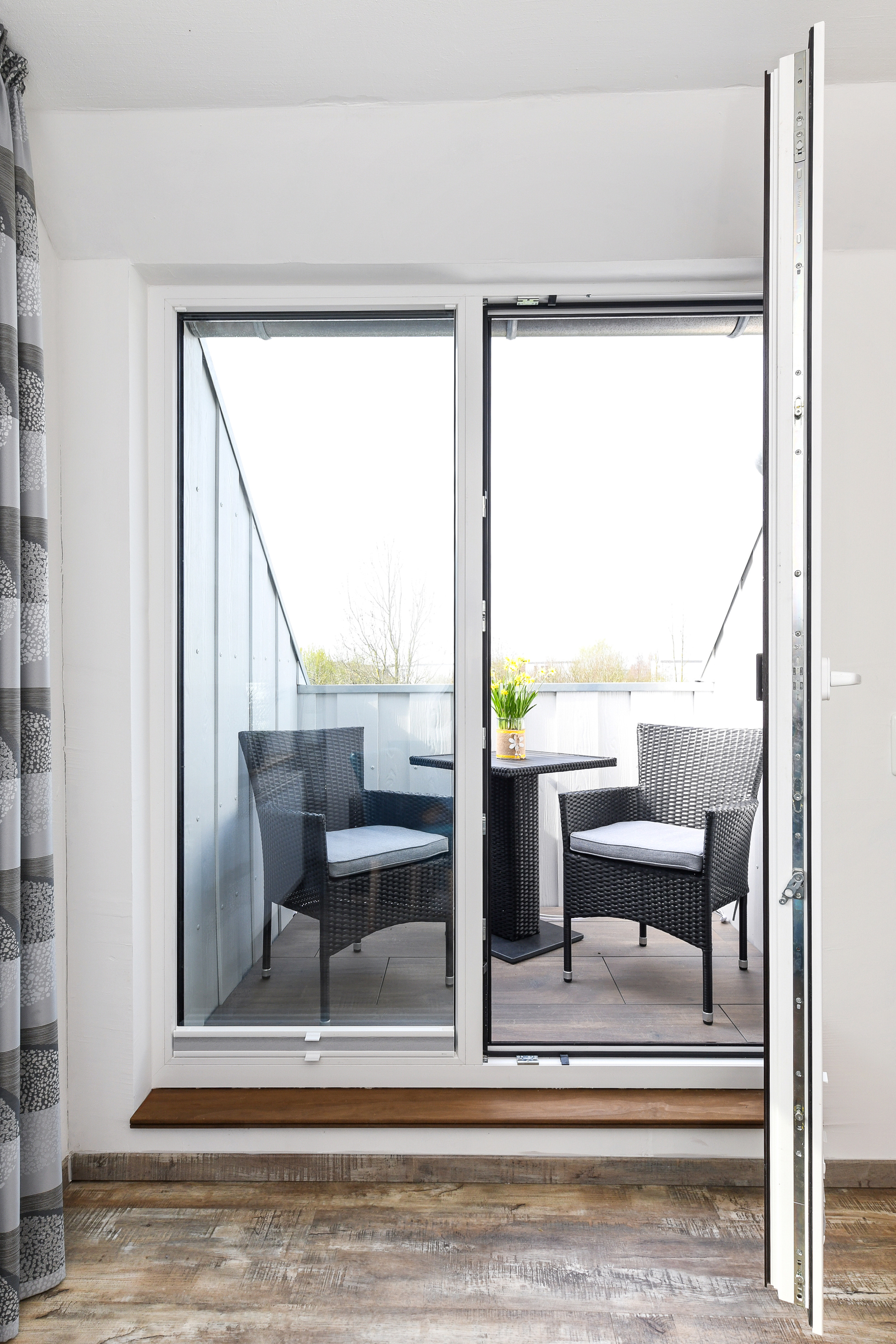 Besonders beliebt bei den Gästen der Ferienwohnung: der schöne Balkon. Ihnen stehen neben einem Kühlschrank auch eine Kaffeemaschine und eine Mikrowelle zur Verfügung.